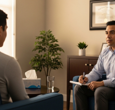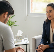 Encuentro entre terapeuta y paciente en un ambiente de confidencialidad.